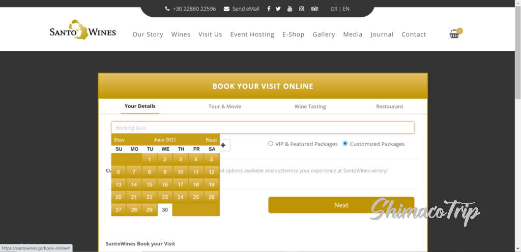 - ①まず、下記のリンクにアクセスし、適当な予約日を選択し「Next」をクリック。
