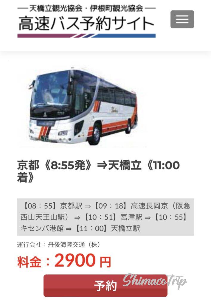 京都駅から京丹後鉄道の高速バスに乗って天橋立駅まで行くことができます。
