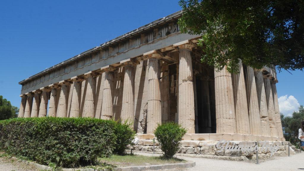 ヘファイストス神殿は、炎と鍛冶の神とされたヘファイストス(テセウス)を祭る神殿である。パルテノンと比べると状態がすごくきれいだけど、修復されたのかな?
