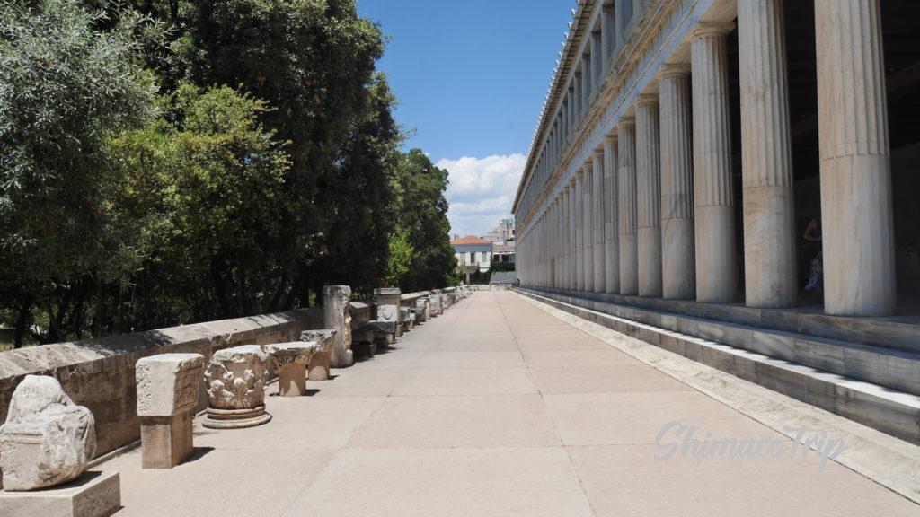 アッタロスの柱廊は、ペルガモン王アッタロスが寄付したものだそう(ペルガモンといえばベルリンを思い出す)。すごく状態が良いのだが、これは1950年代に再建されたようだ。内部は博物館になっているのだが、午後の暑い中で観光する元気が失せていたので見れていないので残念。