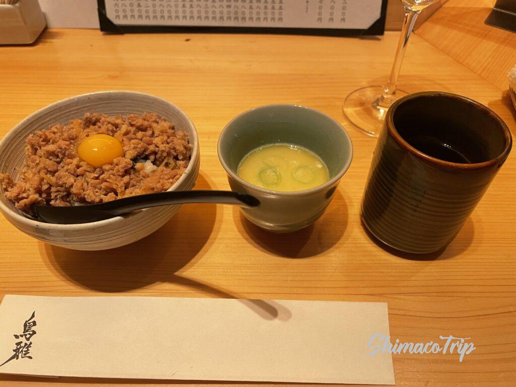 さて、〆の鶏そぼろご飯と白湯スープ。これ、鶏の旨味が凝縮していてめちゃめちゃ美味しかったです。