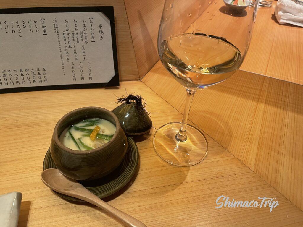 茶碗蒸しが出てきたり、ワインも種類多く鶏に合わせて白をいくつかペアリングしてみました。もちろん宮崎ですので、焼酎も沢山ありました。