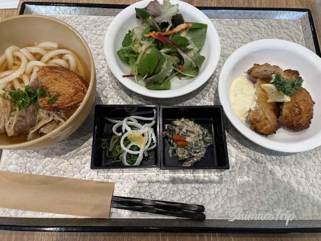 朝食は、飫肥天うどん(肉うどん風なトッピングに飫肥天もトッピング)、チキン南蛮、冷や汁と朝から宮崎名物が一度に味わえます(1月に冷や汁はさすがに寒いので試していませんが)。
