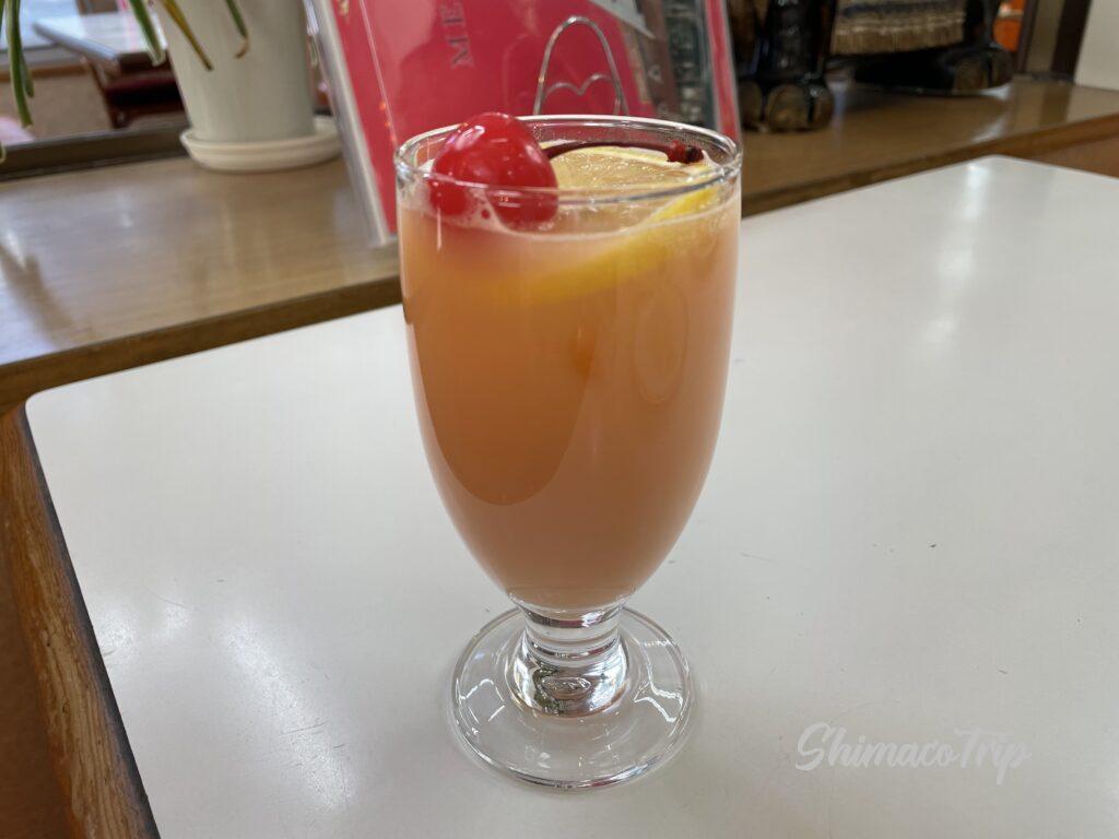 食後にグァバ・ジュースを注文。お口直しに最適なさわやかな甘さでした。