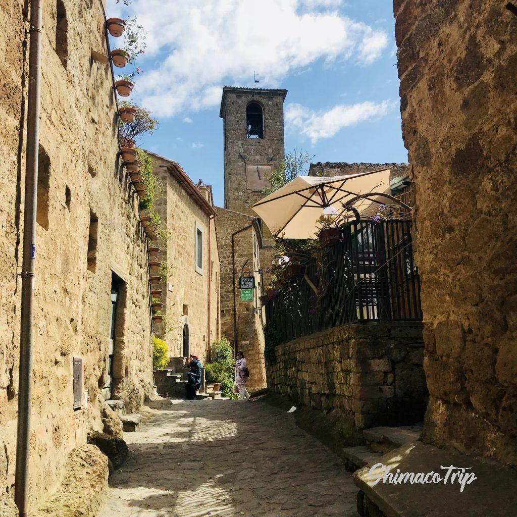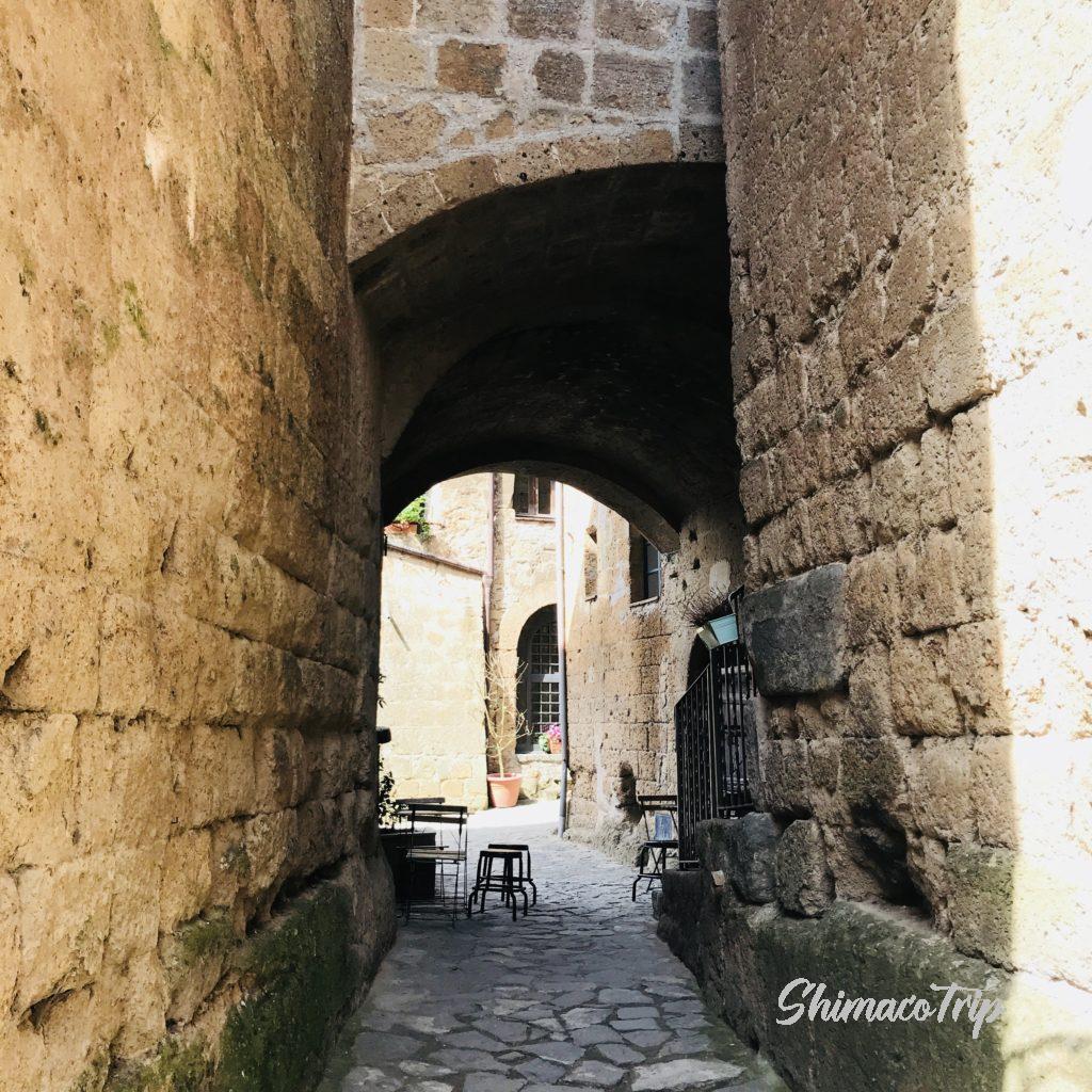 村なのに入場料いるの?と思われるかもしれませんが、チヴィタは孤立した陸の孤島であり、長い橋のみが陸地とつながる唯一の手段で住んでいる人も少ない、いわば限界集落です。