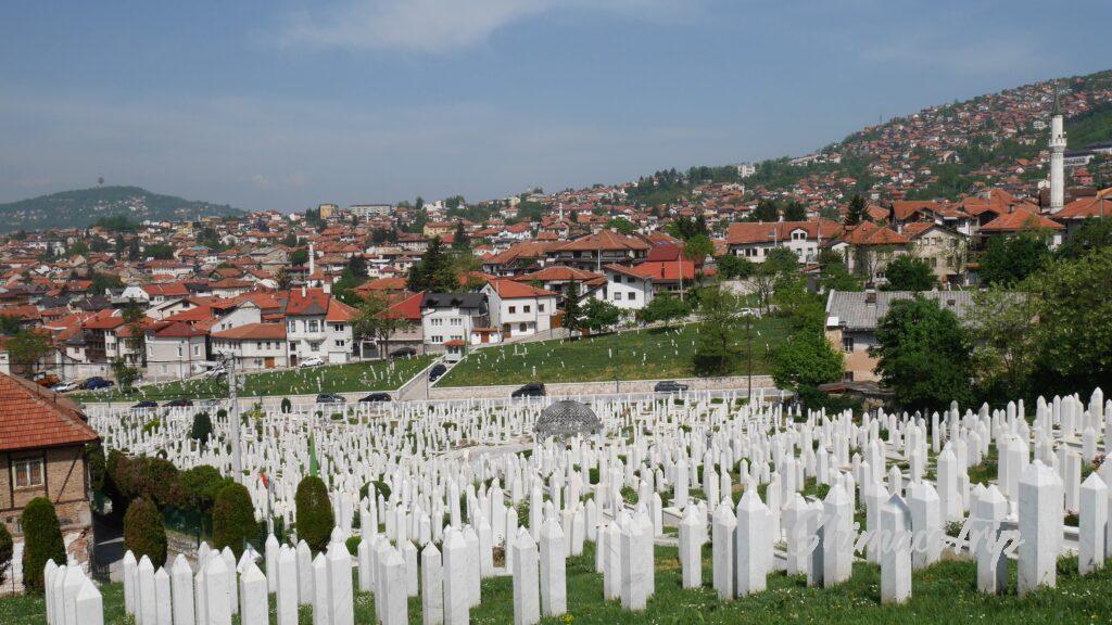 また、要塞に登る途中にはサラエボの各所で見かけるお墓を見ることができます。