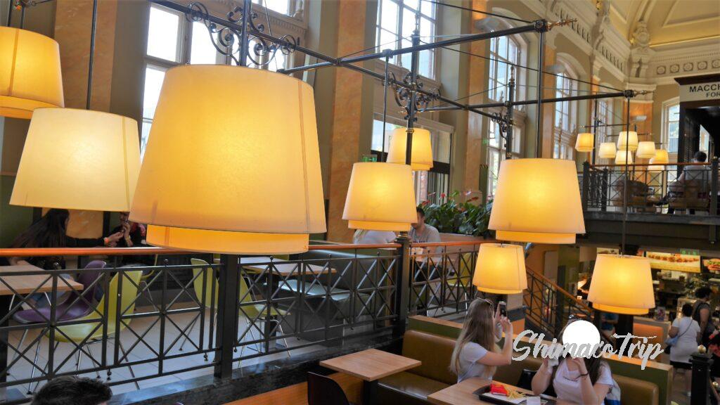 各カウンターで注文したドリンクや料理を屋内か中庭の席に自分で運ぶシステム。
