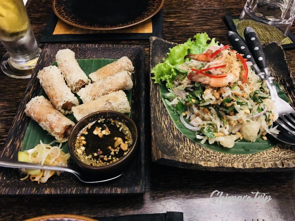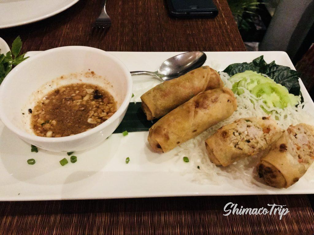 4品ほどオーダーする。春巻きはカンボジアでたくさん食べましたが、具がぎゅっと詰まってジューシー。安定のおいしさです。