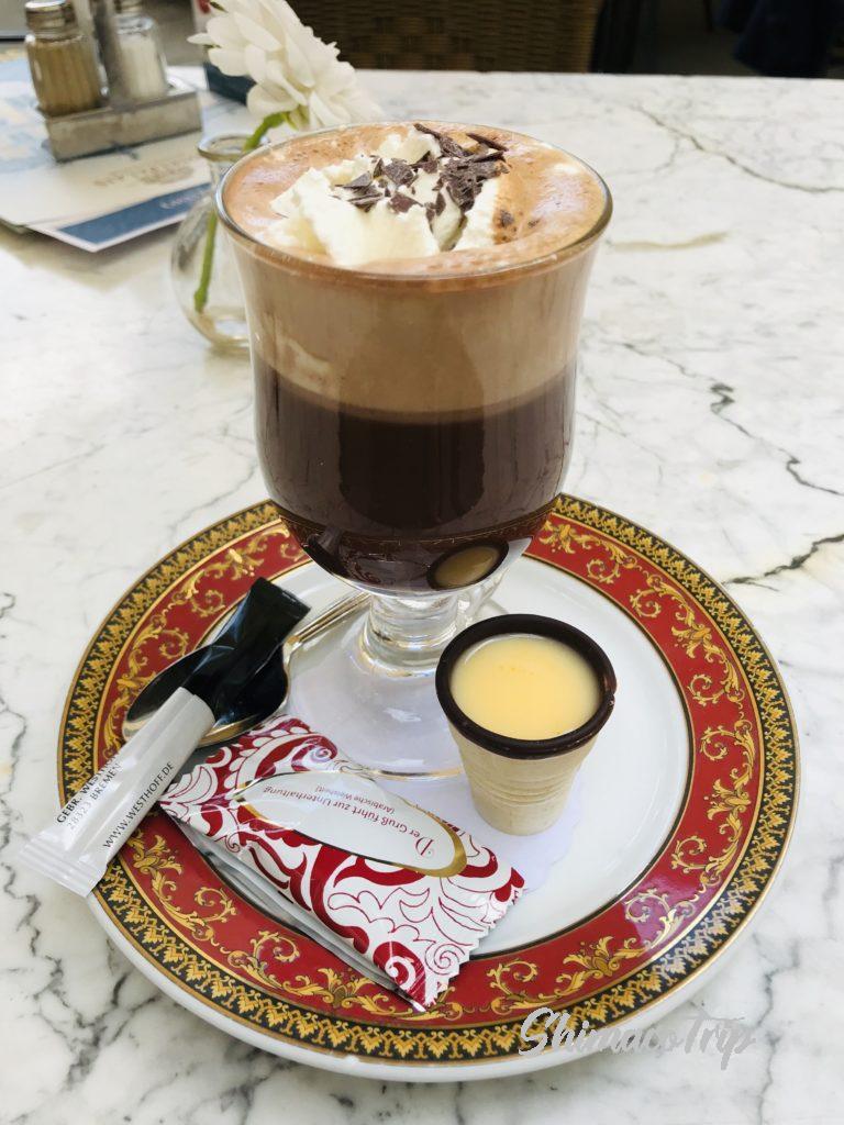 歩き疲れてジグソーパズルの前の老舗ぽいカフェでエッグノッグコーヒーを飲む。