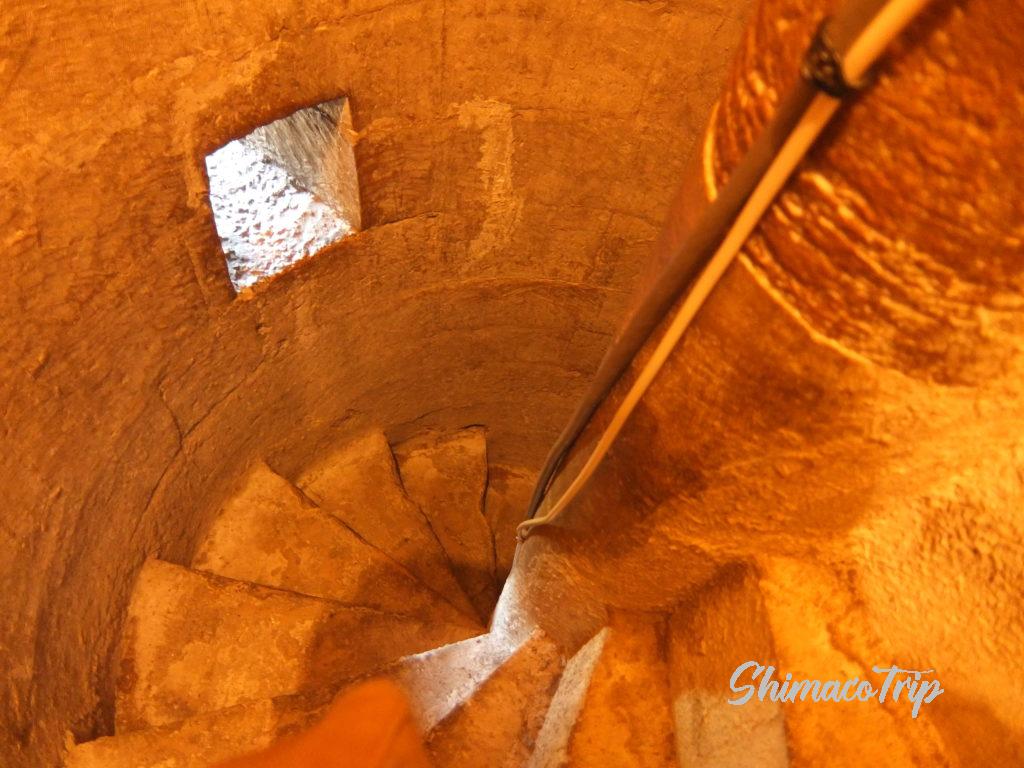 すれ違うのも一苦労な螺旋階段を15分くらい登ります。