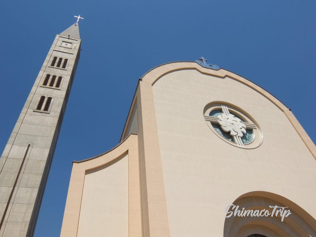 約2時間の散策を終えて、ドライバーさんと待ち合わせしました。川を挟んでモスタルの反対側にある教会に連れて行ってくれました。ボスニア紛争時に破壊されたものを修復しているらしいです。塔がちょっとオベリスクっぽいですね。