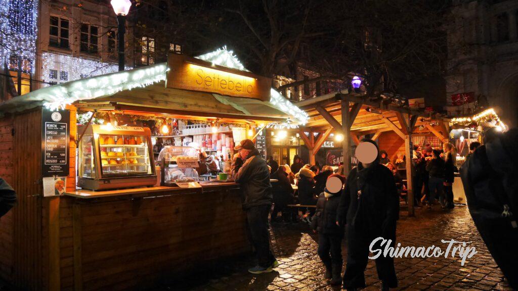 周辺にはクリスマスマーケットがあって、ホットワインや軽い軽食を販売していて、適当な座席に座って食べる感じになります。
