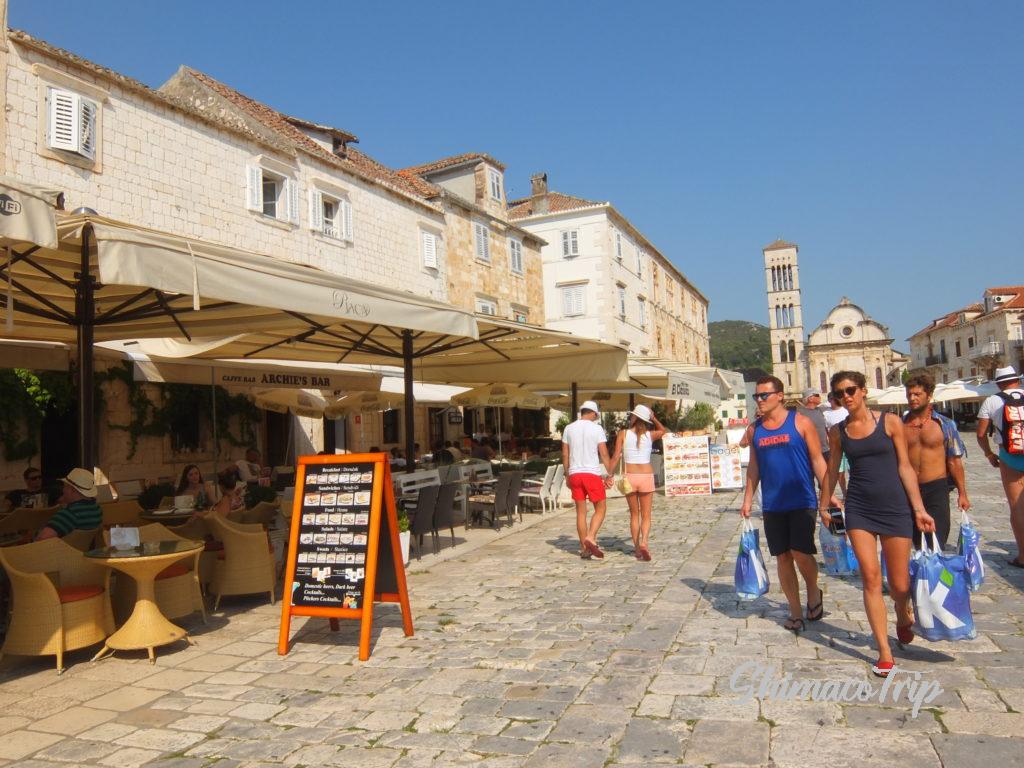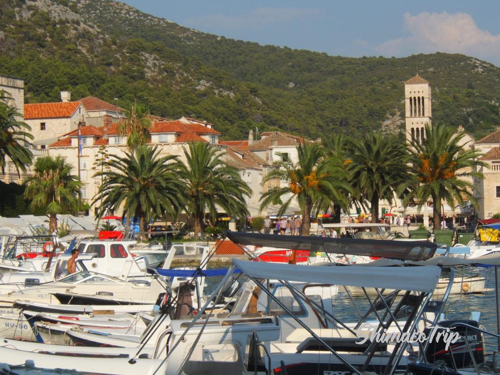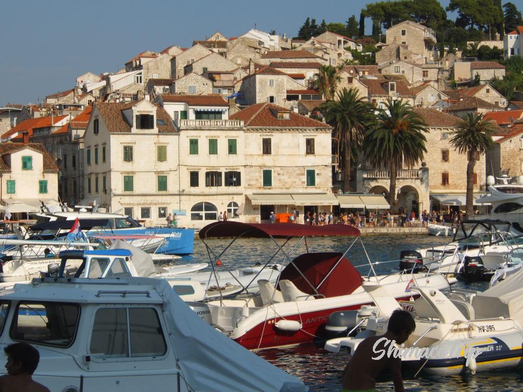名もなき島の滞在を楽しんだのち、しゅっぱしてフヴァル島へ。フヴァル島はスピードボートやフェリーが沢山停泊しており、ヴィス島に比べると優雅な雰囲気。ヨーロッパでも人気のリゾートだそうです。