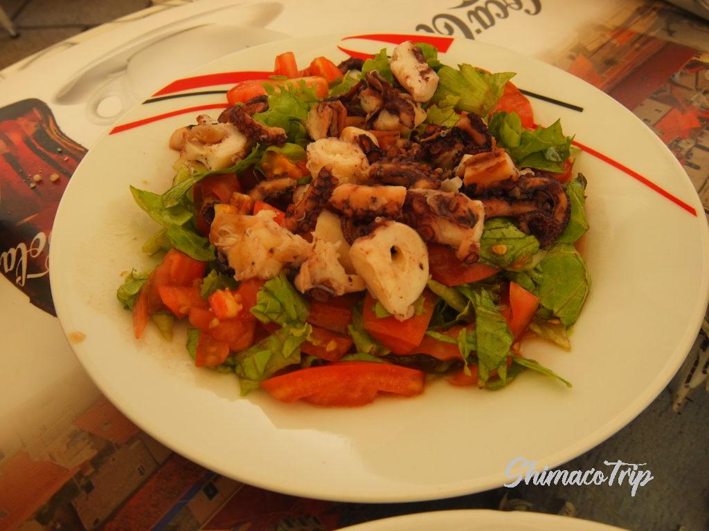 オクトパスサラダはバルサミコ風味のドレッシングと和えてあって、適度な酸味が暑い気候にピッタリでした。