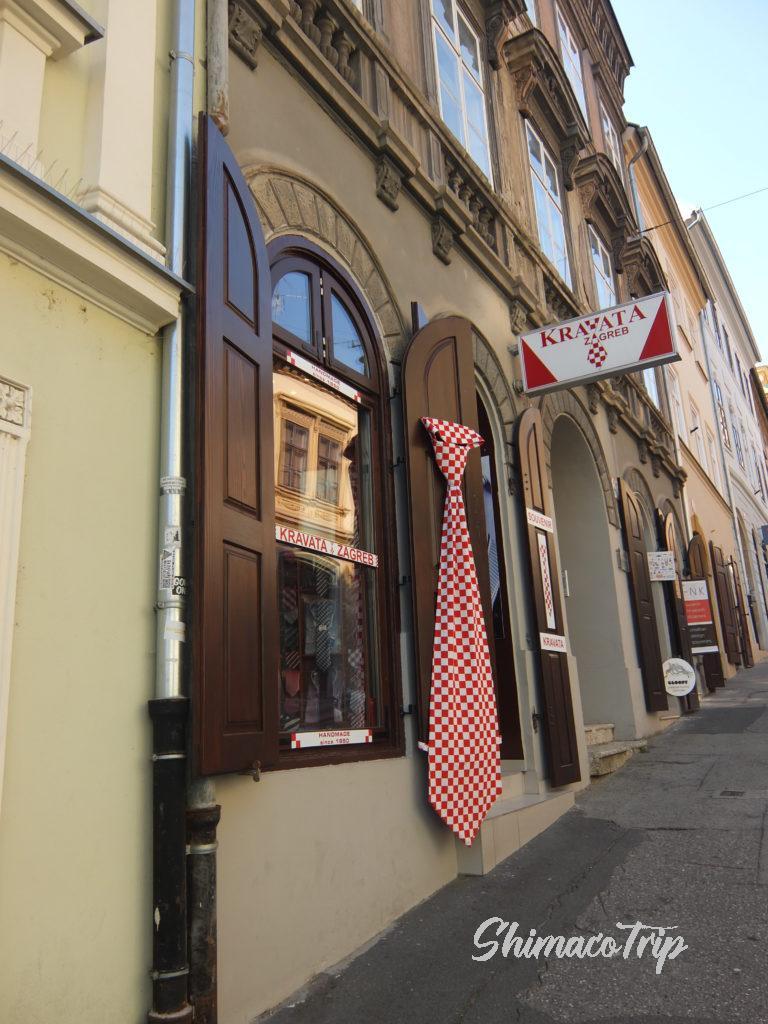 ネクタイ発祥の地クロアチア。ネクタイ専門店クロアタを見つけた。のちにフランス語Cravate(=ネクタイの意味)になった。