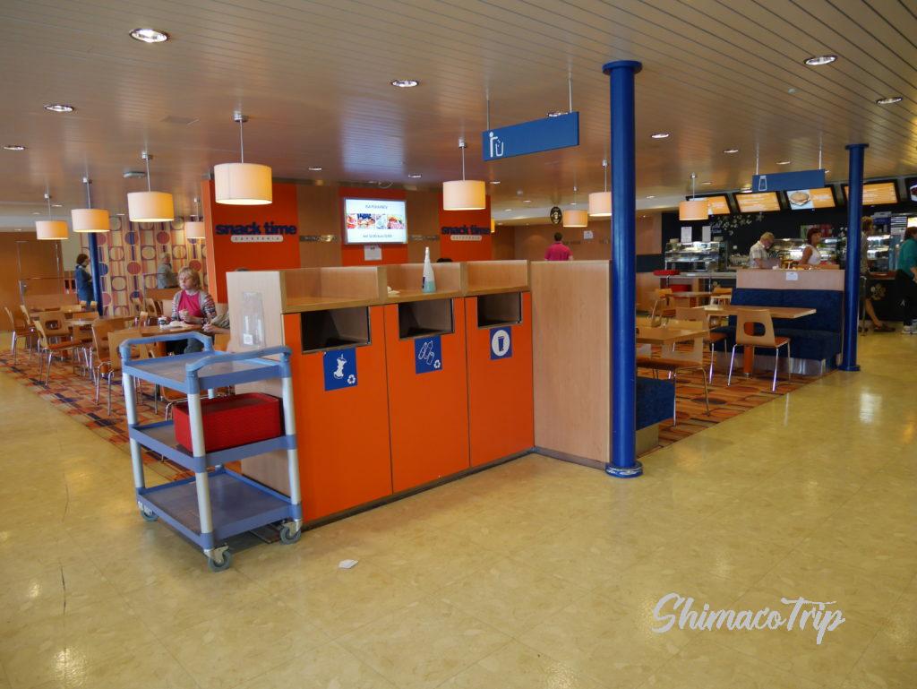 船内は広く、カフェテリアや免税店、スーパーマーケットがあります。座れるエリアも広いので快適な船旅となりました。