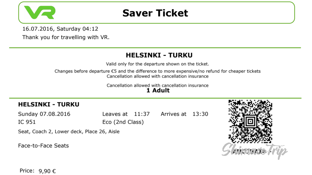 ヘルシンキ中央駅からフィンランド鉄道VRでトゥルク駅まで行きます。