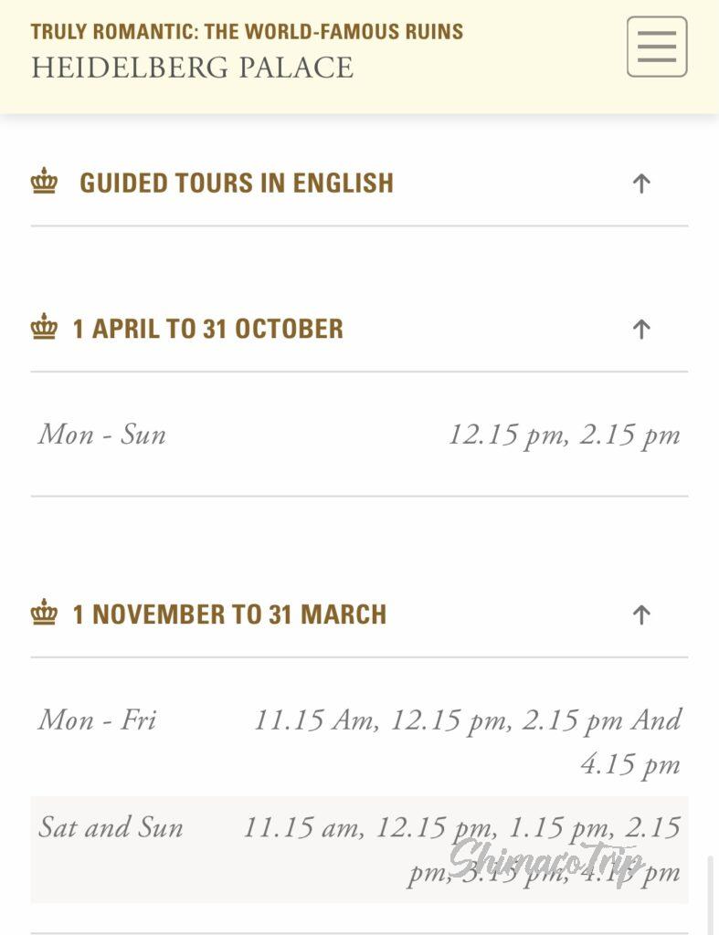 ドイツ語と英語ツアーが開催されていますが、多くの方が英語ツアーに参加されると思いますので、英語ツアーの開催時間を掲載します。なぜか夏の方が少ないのが不思議。※2021/8時点のもの