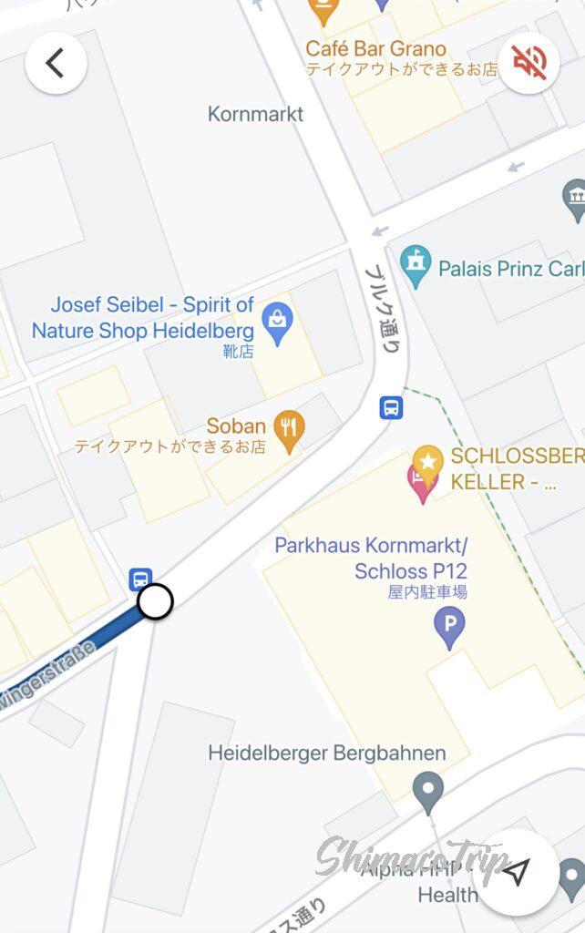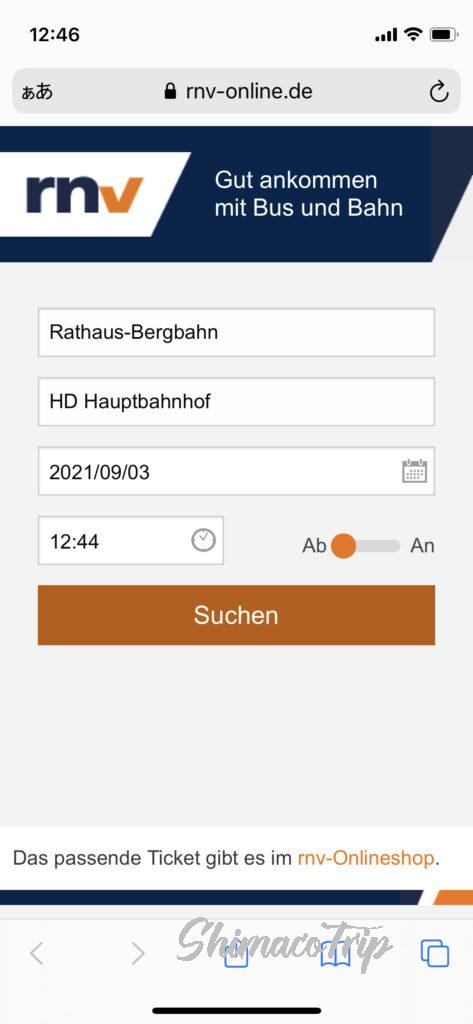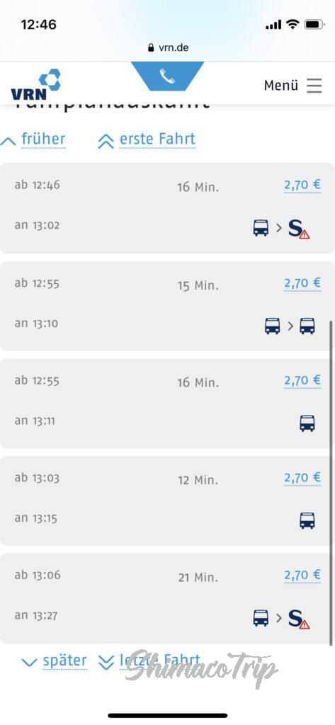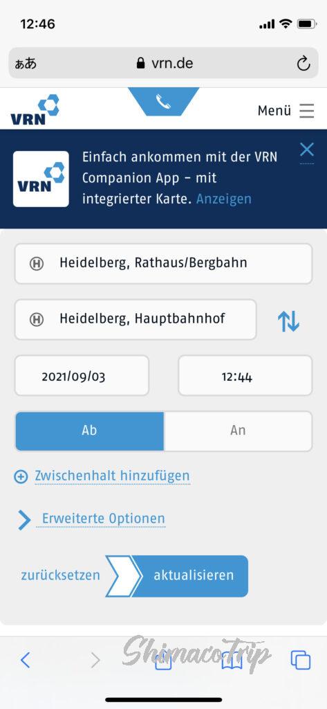 出発地のバス停と到着地(ハイデルベルク中央駅)をセットすると、