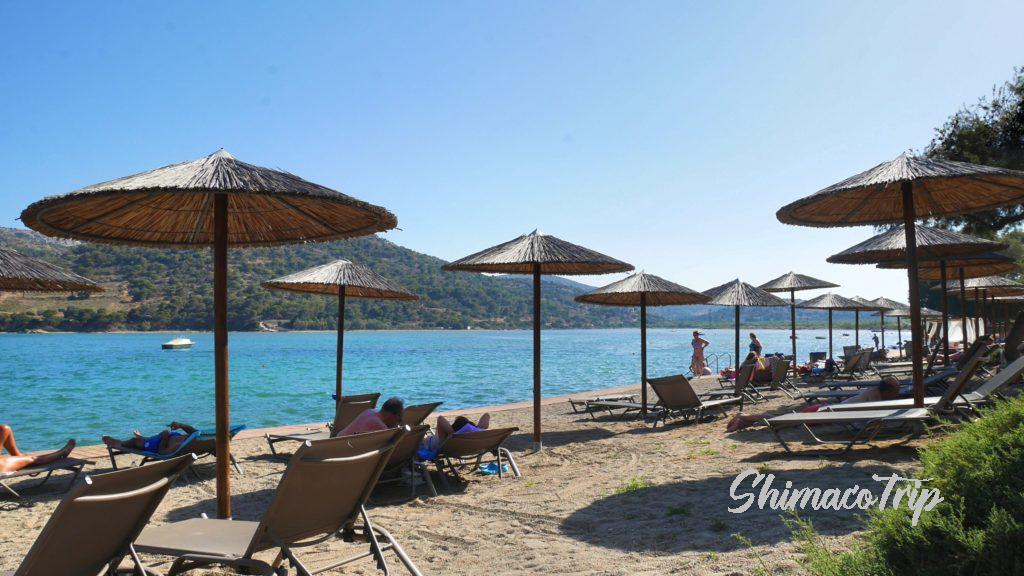 目の前ビーチで、海の色も綺麗なんですよねえ。パラソルやビーチベッドも沢山あって、席取りしなくても大丈夫。