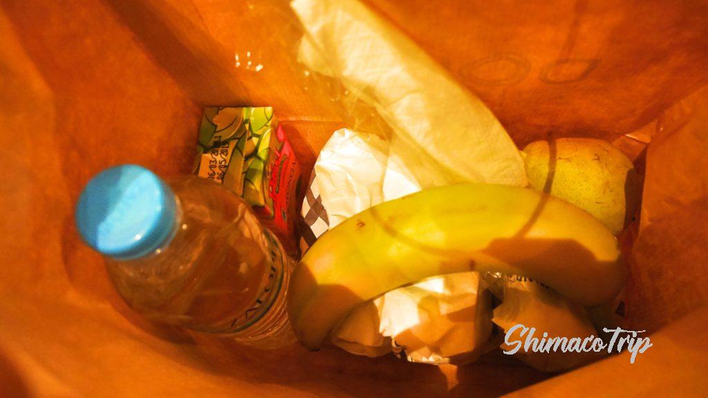 翌朝は7:00の便のため、朝5時台のシャトルでホテルを出発しましたが、なんとブラックファストボックスを準備してくれました。心遣いがありがたい。オレンジジュースにお水にバナナ、パンやクッキーなど。水以外は機内に持ち込み、サントリーニ島で朝食を頂きました。