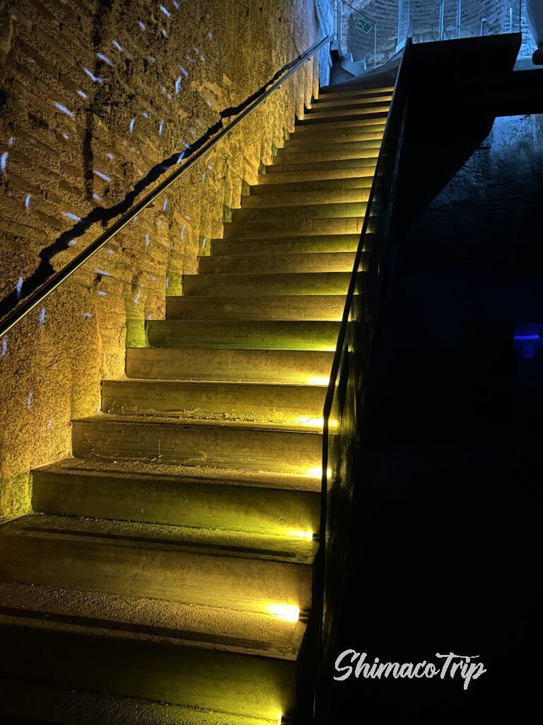 地下深くまで長い階段を降ります。