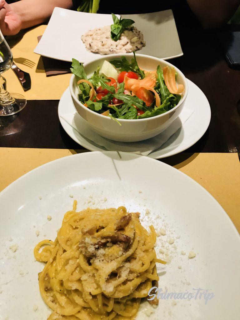 カルボナーラとリゾット、サラダを注文した。定番メニューだがどれも絶品すぎた。