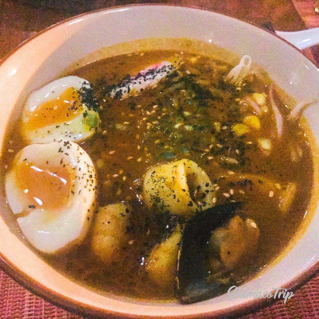 若干ジャンキーですが、シーフードの旨味が効いてドロッとしたスープ(日本でいうつけ麺くらい)に卵麺が絡んで美味しかったです。