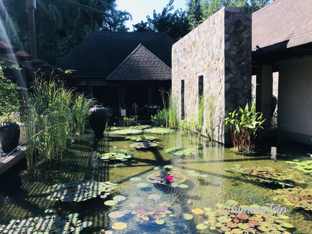 レセプションエリアは水辺のある開放的な作りとなっていて気持ち良いです。