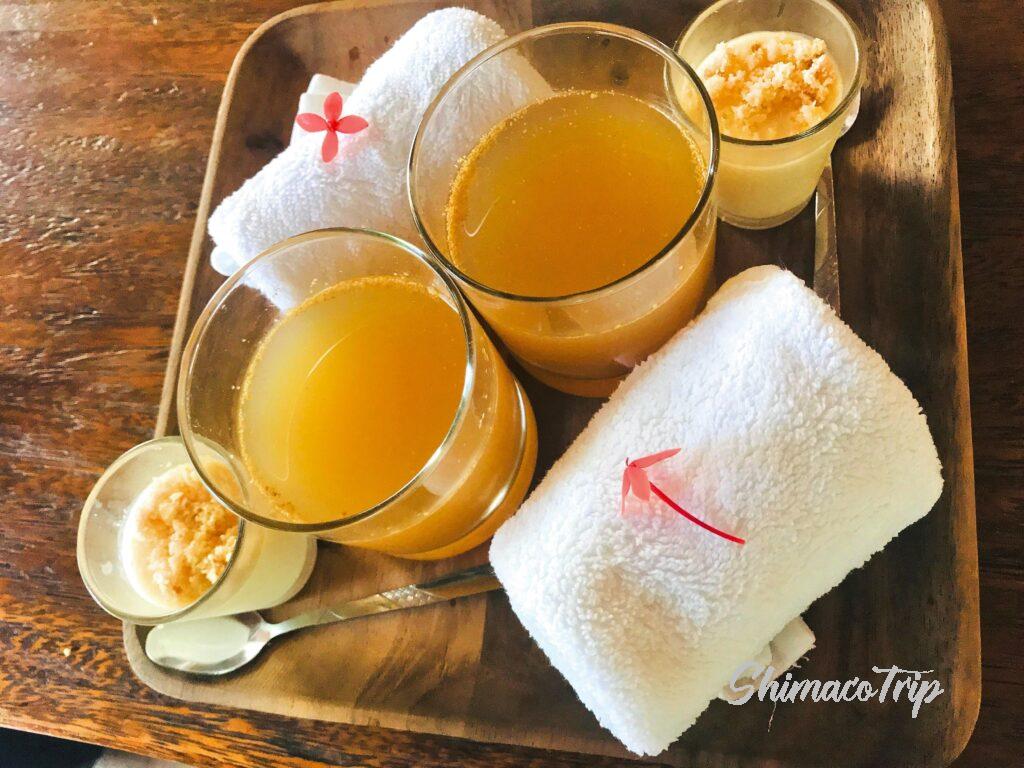 チェックインではウェルカムドリンクの冷たい生姜湯を頂きます。