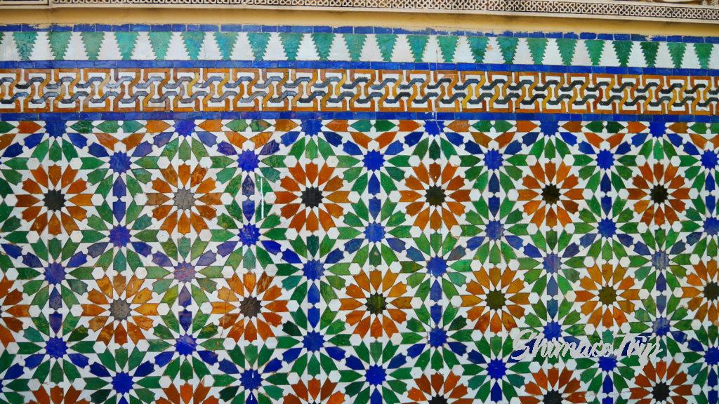 ゼリージュと言われるタイルモザイク。スペインでもよく見かけました。モロッコの影響ですね。