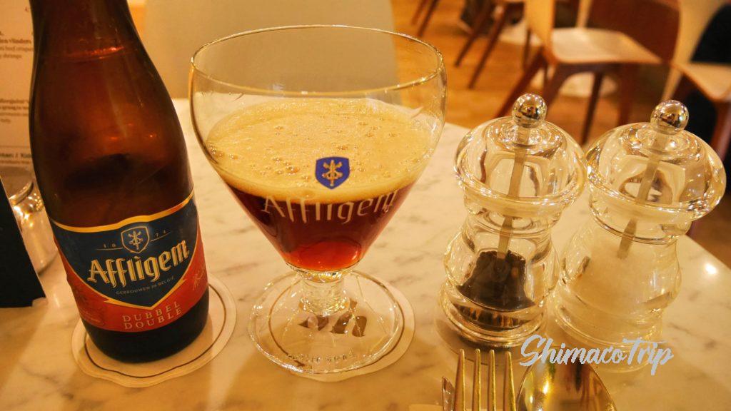 ビールはベルギーのAfliganで、トラピストのシメイブルーみたいな濃さがあり濃厚で美味しいです。寒いからビールが進まないと思ったけど、室内で濃いめのアルコール度数高めのビールを飲むと体が温まってきます。