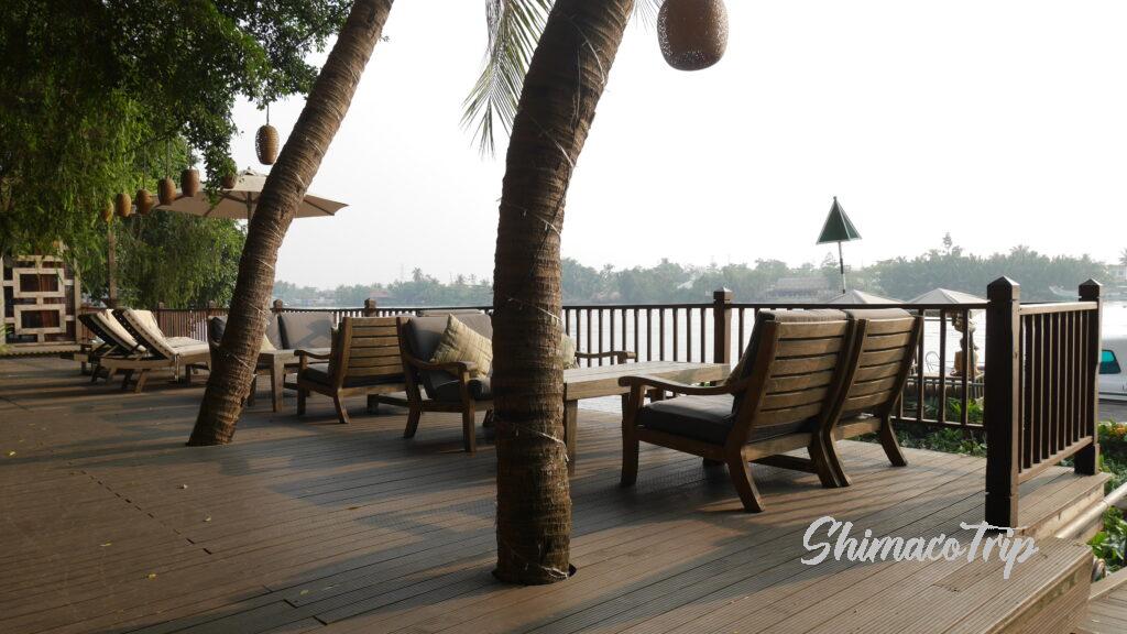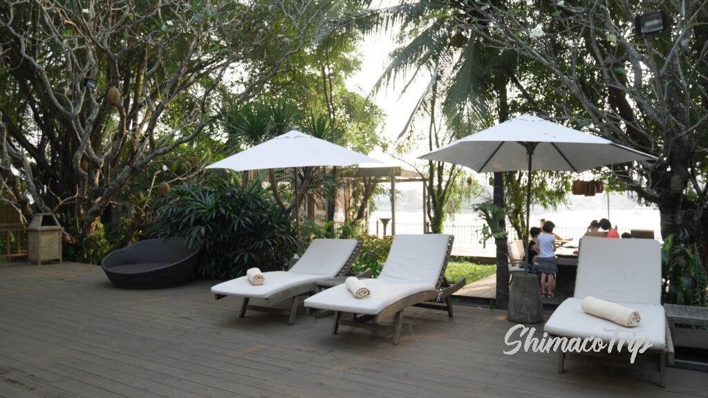チェックイン後、テラスでウェルカムドリンクを頂きます。