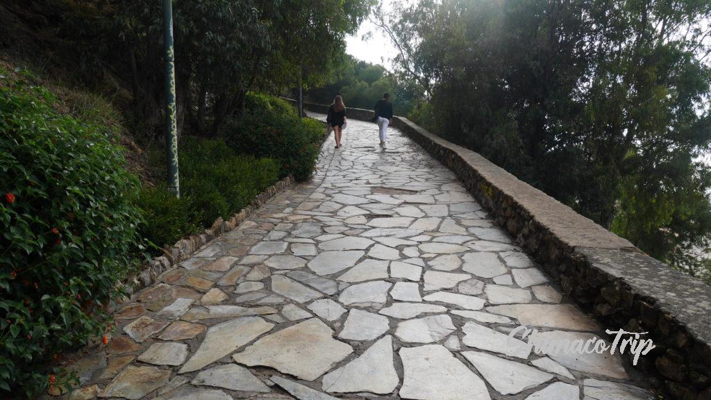 バスでもアクセスできるけど海方面を見ながら遊歩道を歩いていくのも良い(急な傾斜なので半分ハイキング)。