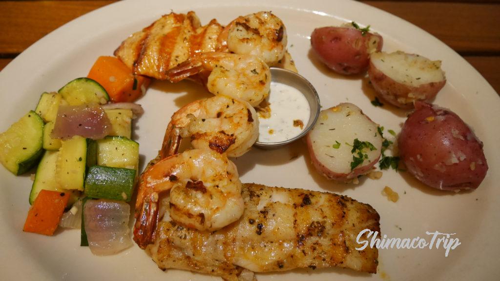 シーフードのミックスグリル。エビがプリプリしておいしかったです。