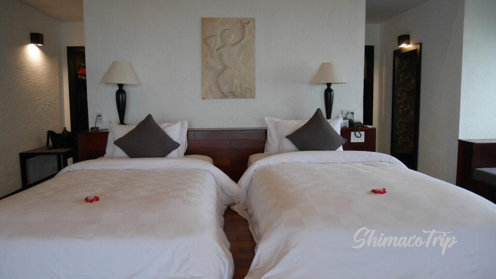 ラグーンに面して広いバルコニーも付いており、こんなところでルームサービス取って食べたり、お酒飲んだら最高なんですが、滞在中雨季で結構寒くてバルコニーはあまり利用できませんでした。
