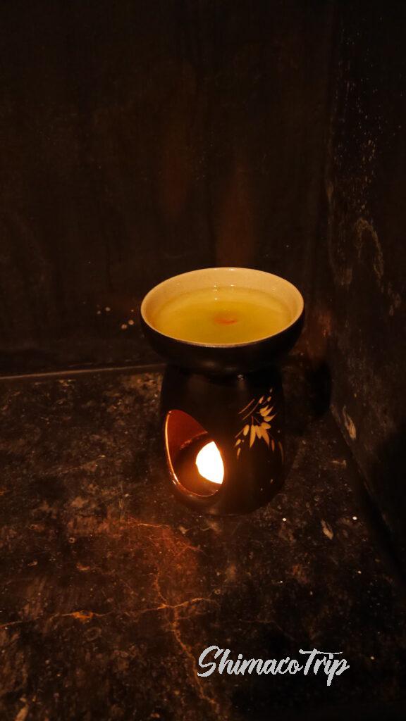 嬉しいのは食事中にターンダウンでアロマオイルを焚いてくれること。部屋に戻ると良い香りで迎えてくれ、すごく癒されました。アロマオイルはcajuput(カユプテ)というオイルで、ユーカリのような若干薬っぽさもありながら柑橘系のさわやかな香りもします。